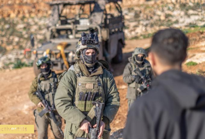 Les forces israéliennes arrivent dans le village d’Al Mughayyir, en Cisjordanie, à l’est de Ramallah, le 17 janvier 2026. Les soldats et les policiers israéliens ont fait une descente dans la propriété de la famille Abu Hamam dans le village, arrêtant l’une des femmes de la famille après qu’un colon lui ait bloqué le passage vers sa maison et ait appelé les forces israéliennes sous de faux prétextes. Au cours de la descente, la police a également expulsé les militants solidaires qui étaient présents pour assurer la protection de la famille, régulièrement victime d’attaques. Le photographe Avishay Mohar, de l’organisation Activestills, a également été arrêté lors de cet incident et s’est vu interdire l’accès au village pendant 14 jours. La veille, un enfant de 14 ans avait été tué par les forces israéliennes lors d’un autre raid dans le village – Photo : Avishay Mohar / Activestills