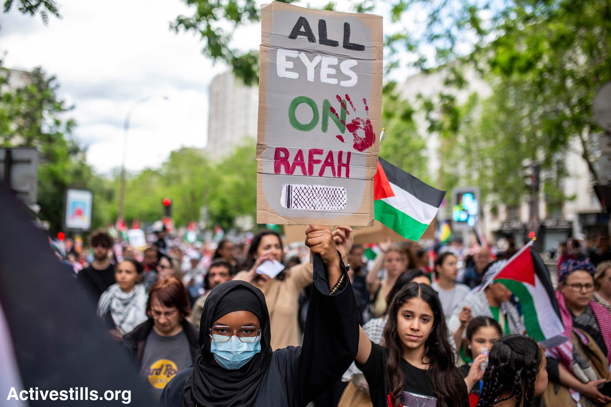 Demonstrators protest in Paris, calling for an end to Israel’s genocide in Gaza and for an immediate ceasefire. The demonstration also commemorated the 1948 #Nakba and ethnic cleansing campaign carried out by Zionist forces in the creation of the settler colony of Israel, May 18, 2024. The Kanak flag from pro-independence indigenous Kanak communities of New Caledonia, an overseas territory of France, was also seen in the protest, in support of the current wave of demonstrations against proposed changes to