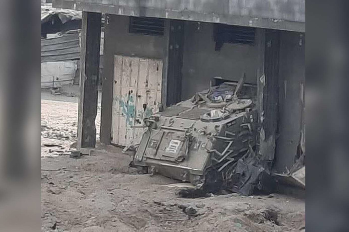 Véhicule téléguidé et piégé dans Gaza – Soyons certains que l’Etat génocidaire saura valoriser son savoir-faire meurtrier concernant les automates de guerre « testés sur le terrain » auprès de ses clients internationaux – Photo : via EuroMed Monitor