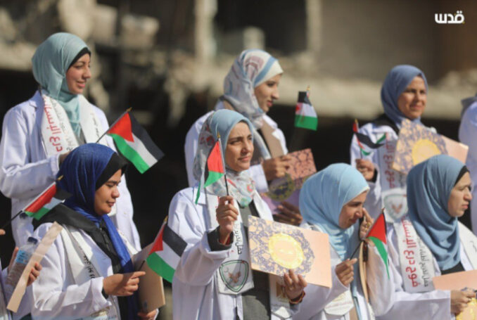 Le jeudi 25 décembre 2025, alors qu’Israël poursuit son génocide contre les Palestiniens, 168 étudiants ont obtenu leur diplôme de médecine à Gaza. Vêtus de leurs blouses blanches, ils se sont tenus devant la façade en ruines de ce qui était autrefois le plus grand hôpital de Gaza, le Complexe Médical Al-Shifa.