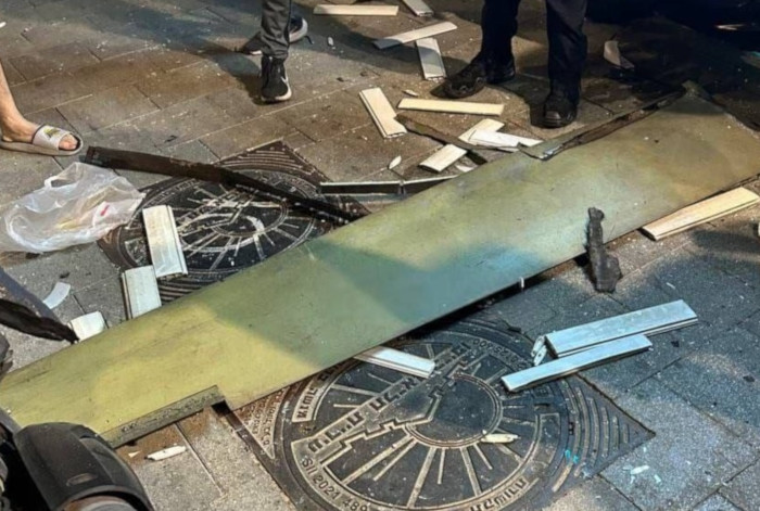 Image : réseaux sociaux Débris du drone qui a frappé un immeuble au coeur de Tel-Aviv [Tall-Habib], causant de considérables dégâts et faisant plusieurs victimes – Image : réseaux sociaux