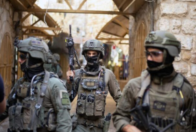 8 novembre 2025 - Des tueurs à gages des forces d'occupation israéliennes protègent les incursions des colons tout en restreignant la liberté de mouvement des Palestiniens dans la vieille ville d'Hébron, en Cisjordanie. Ces incursions répétées s'inscrivent dans le cadre de la stratégie à long terme d'Israël visant à affirmer son contrôle sur la ville, en particulier sur la zone entourant la mosquée d'Ibrahim - Photo : Wahaj Bani Moufleh / Activestills