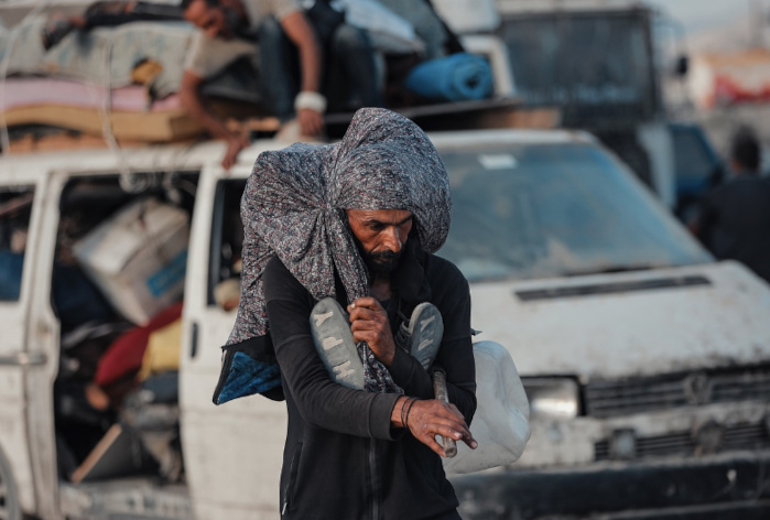 26 septembre 2025 – « Avec des corps fragilisés, paralysés par la faim et épuisés par la peur, ils marchent du nord de Gaza au sud, pour un voyage des plus éprouvants vers un abri qui ne sera peut-être jamais trouvé » – Photo : Hosny Salah / Instagram