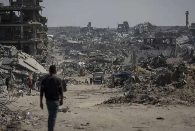 À Khan Younis, les autorités rapportent que 85 % de la ville a été détruite, avec des centaines de milliers de tonnes de débris et de déchets bloquant les infrastructures vitales.