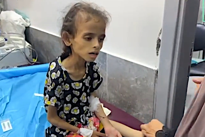 7 août 2025 – Dr Musab Farwana, à l’hôpital « Patient’s Friends Benevolent Society » de Gaza : « Nous voyons des enfants souffrant non seulement de malnutrition, mais aussi de déshydratation sévère due au manque d’eau potable. Les cas sont très graves. Nous risquons de perdre beaucoup d’enfants. Si la situation perdure et n’est pas traitée de toute urgence, elle va s’aggraver. Nous perdrons de plus en plus de vies innocentes, des dizaines, voire des centaines d’enfants » – Extrait vidéo Abdel Qader Sabbah