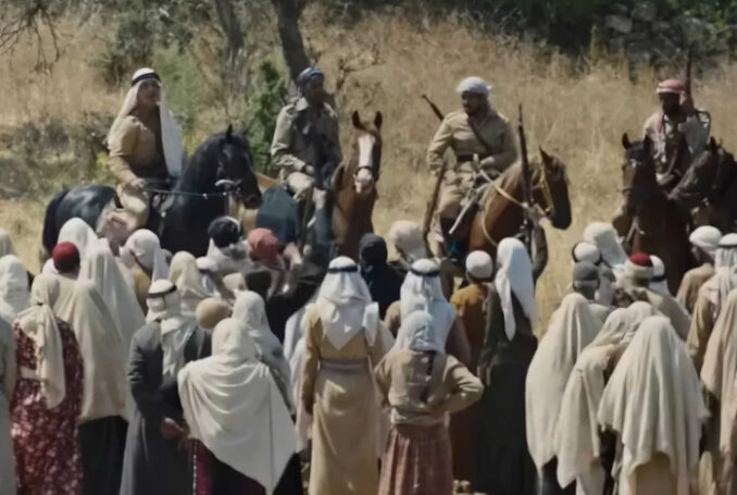 Une scène tirée de « Palestine 36 » montre des insurgés ralliant les Palestiniens - Illustration : capture d'écran