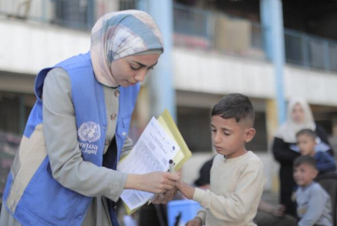 Octobre 2024 - Équipes de l'UNRWA administrant des vaccins contre la polio dans une école de l'UNRWA à Khan Younis, dans le sud de la bande de Gaza - Photo : UNRWA