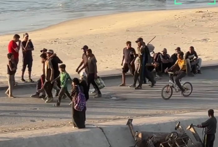 10 octobre 2025 – Palestiniens déplacés retournant dans le nord de Gaza par la route Al-Rashid – Capture d’écran vidéo Abdel Qader Sabbah