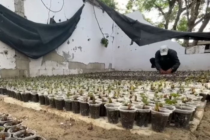 Capture vidéo Cultures en pots de substitution, face à la destruction délibérée des terres arables par les Israéliens – Capture vidéo