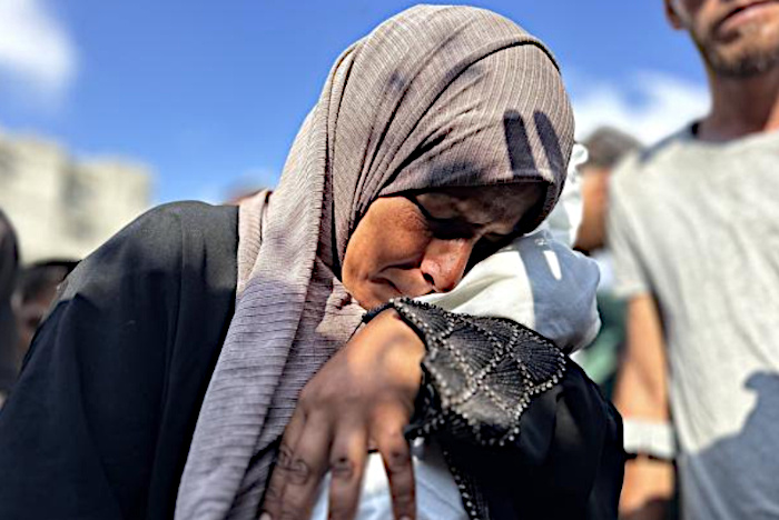 19 juillet 2025 – La mère de Fadi Al-Najjar, âgé de trois mois, tient son corps au complexe médical Nasser à Khan Yunis, dans la bande de Gaza, après qu’il soit mort de malnutrition, le 19 juillet 2025. Le niveau de famine à Gaza a atteint des niveaux alarmants au cours des derniers jours, et les Nations unies ont averti que des milliers de personnes à Gaza sont « au bord d’une famine catastrophique ». Plusieurs organisations internationales de premier plan ont accusé Israël d’utiliser la famine comme arme de génocide – Photo : Doaa Albaz / Activestills