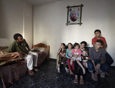 Un portrait de Nisreen Hassan est accroché dans la maison de la ville de Gaza où elle vit en compagnie de son mari et de ses sept enfants – Photo : Abed Zagout
