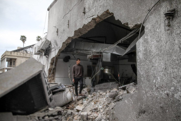 13 avril 2025 – Les dégâts causés à l’hôpital Arab Ahli après qu’une frappe aérienne israélienne a visé l’un des principaux bâtiments de l’hôpital dans le cadre de la guerre génocidaire d’Israël contre Gaza. L’attaque a contraint les patients à fuir et le missile a détruit certaines parties de l’hôpital, y compris le service des urgences. L’hôpital est le plus grand hôpital encore en activité dans le nord de Gaza. Au moins trois personnes, dont un garçon de 12 ans blessé à la tête, auraient été tuées à la suite de l’évacuation forcée. Israël a pris pour cible 36 hôpitaux depuis octobre 2023 – Photo : Yousef Al-Zanoun / Activestills