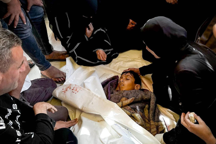 29 avril 2025 – Nabil Za’rab, âgé de douze ans, est inhumé alors que ses proches lui font leurs adieux à l’hôpital Nasser, ainsi qu’à deux autres enfants et à une mère qui ont été tués avec lui pendant la nuit lors d’une frappe israélienne sur un camp de tentes pour personnes déplacées dans la région d’Al-Mawasi, près de Khan Yunis. Les victimes de l’attaque sont les enfants Saba Khalil Al-Qadi, Nabil Za’rab, Misk Shalouf et la mère de ce dernier, Aziza Shalouf. Al-Mawasi a été désignée « zone de sécurité » pour les Palestiniens déplacés, mais Israël continue de la bombarder. Depuis le début de la guerre génocidaire menée par Israël contre Gaza en octobre 2023, au moins 52 243 Palestiniens ont été confirmés morts, dont plus de 18 000 enfants – Photo : Doaa Albaz / Activestills