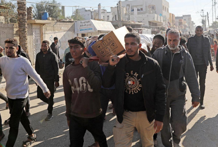 9 janvier 2025 – Alors que les forces coloniales israéliennes continuent de bombarder Gaza, des Palestiniens pleurent et enterrent leurs proches à l’hôpital des Martyrs d’Al-Aqsa, tandis que d’autres inspectent les décombres d’un bâtiment détruit par une frappe israélienne à Deir al-Balah, dans le centre de la bande de Gaza. Les restes de Mona Al-Dajabi, âgée de quatre ans, ont été placés dans une boîte, et les restes d’autres Palestiniens tués ont été transportés dans des sacs. L’hôpital des Martyrs d’Al-Aqsa est sur le point de fermer, comme d’autres hôpitaux de Gaza, en raison du manque de carburant. Depuis octobre 2023, la guerre génocidaire d’Israël contre Gaza a tué plus de 46 000 Palestiniens, et des milliers d’autres sont toujours portés disparus sous les décombres – Photo : Yousef Al-Zanoun / Activestills