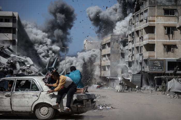 Photo : via Drop Site News 27 septembre 2025 – Les habitants fuient la ville de Gaza sous les attaques israéliennes – Photo : via Drop Site News