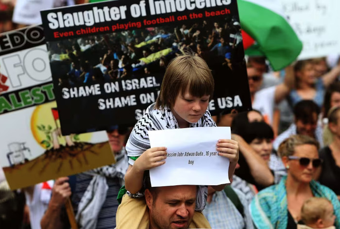 Photo : Archives Juillet 2014 – A Dublin, en Irlande, les manifestants dénoncent les massacres commis à Gaza – Photo : Archives