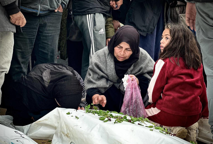 23 janvier 2024 – Des Palestiniens pleurent leurs proches au complexe médical Nasser à Khan Yunis, après que leurs dépouilles aient été récupérées dans les décombres des maisons détruites et bombardées par les forces coloniales israéliennes à Rafah et à Khan Yunis. Les dépouilles ont été retrouvées après que l’armée israélienne se soit retirée de certaines parties de la bande de Gaza à la suite de l’accord de cessez-le-feu. Les attaques génocidaires d’Israël ont tué plus de 47 000 Palestiniens. Selon la défense civile de Gaza, les restes de 10 000 Palestiniens doivent encore être retrouvés sous les décombres et enterrés – Photo : Doaa Albaz / Activestills