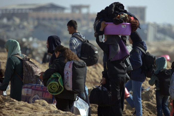 Photo : WHO Sur fond de destruction, des personnes déplacées à Gaza par le conflit se déplacent du sud vers le nord de l’enclave – Photo : WHO