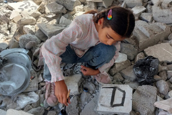 13 novembre 2025 - « Parce que je crois que l'art est le seul compagnon des enfants au milieu des décombres, nous avons aujourd'hui mené une activité intitulée 'Les âmes qui nous manquent' dans le cadre de mon travail au sein du projet 'L'Art à partir des ruines'. Mes jeunes élèves ont été témoins à maintes reprises de la perte d'êtres chers : certains ont perdu toute leur famille, d'autres un frère ou une sœur. Ces scènes déchirantes se sont répétées des centaines de fois à travers la bande de Gaza. Malgré tout, les élèves ont trouvé de la joie à exprimer leurs émotions et à créer de nouvelles œuvres d'art. Ensemble, nous avons véritablement créé « l'art du cœur des décombres » - Photo : Nada Rajab