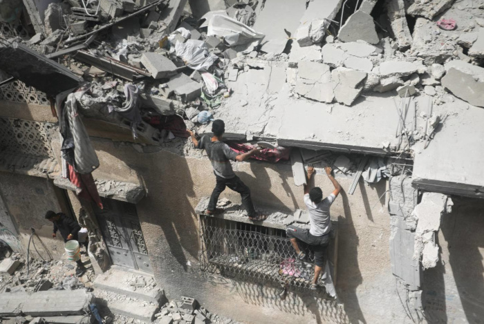 18 mai 2025 – Des Palestiniens cherchent les corps de leurs proches tués lors d’une frappe aérienne israélienne dans le quartier d’Al-Saftawi à Jabalia. Le bilan de la guerre génocidaire menée par Israël contre Gaza s’élève désormais à plus de 53 000 morts recensés, depuis le 7 octobre 2023 – Photo : Yousef Al-Zanoun / Activestills