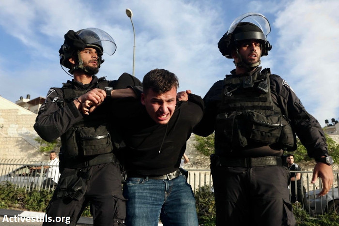 Kidnapping d’un jeune palestinien par les troupes israéliennes d’occupation à l’entrée de la ville de Jérusalem [al-Qods] – Photo : Activestills.org