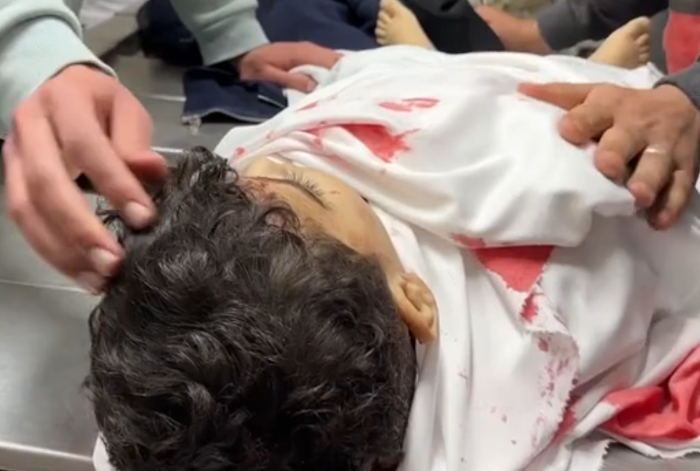 Le corps du petit Yahya Al-Malahi à la morgue de l’hôpital Al-Shifa, à Gaza, le 14 avril 2026 – Extrait de la vidéo de Mohammed Ahmed